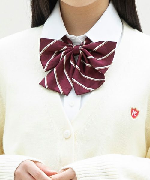 ワイシャツの襟やニットのVラインに合わせて、きれいなバランスを作れるように設計されたリボンです。