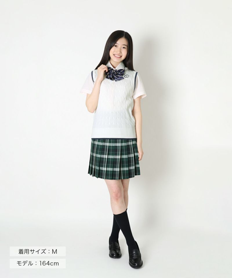 トラッド感あふれるケーブルニットは、どんな色味のスカートやブレザーにも合わせやすい男女兼用でボーイズサイズで作られています。