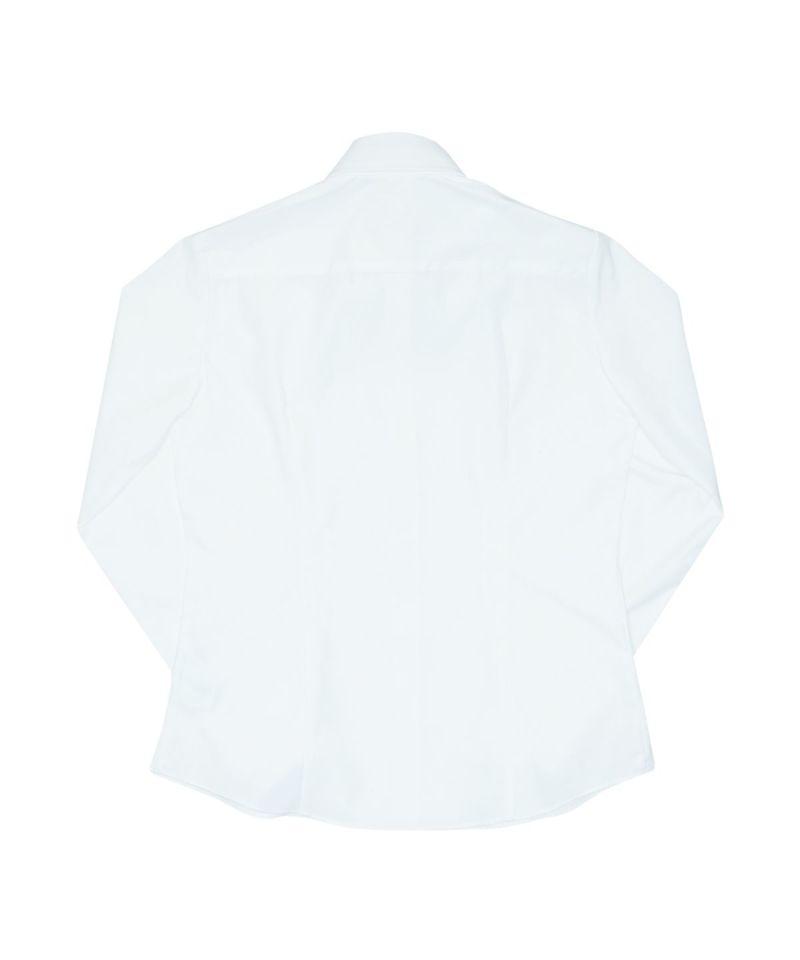 CONOMiオリジナルのホワイト長袖シャツ。立体裁断で体のカーブに合わせてシルエットをスッキリと綺麗に見せてくれます。